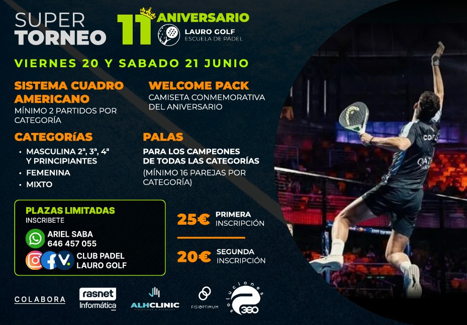 SUPER TORNEO 11 ANIVERSARIO LAURO GOLF ESCUELA DE PADEL